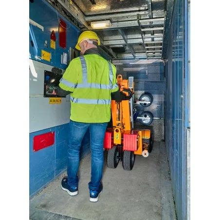 Ce qui distingue vraiment cette machine, c'est sa conception compacte, qui la rend facilement transportable et compatible avec les ascenseurs de chantier standard. Mesurant seulement 1,435 m de longueur et 1,41 m de hauteur, elle est d'une remarquable polyvalence et s'adapte à divers environnements. De plus, son faible rayon de braquage de seulement 90 cm permet une manœuvre aisée, même dans les espaces les plus restreints.